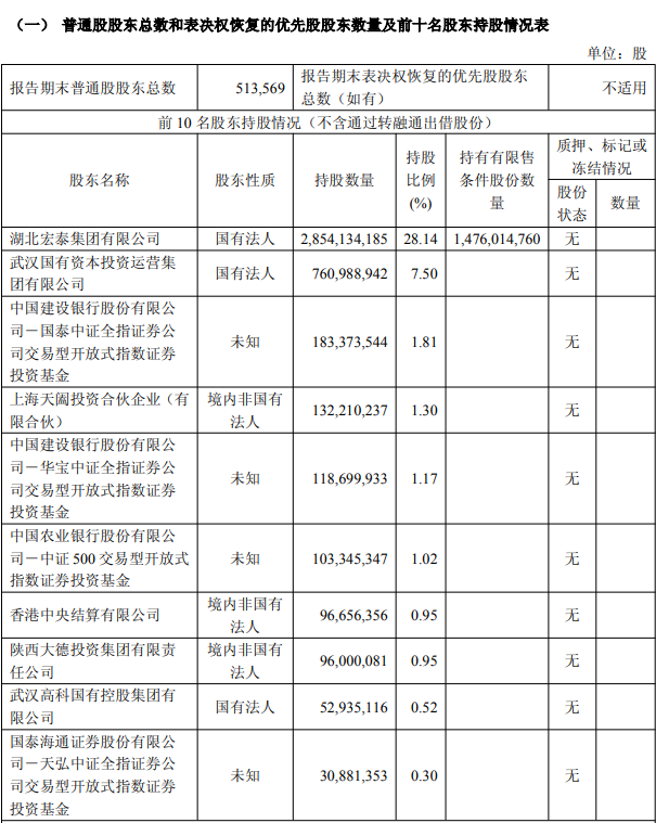 股权方面,天风证�年三季报显示,截至报告期末,公司持股比例𶞕%以上的股东共񀙜家,分别为湖北宏泰集团有限公司、武汉国有资本投资运营集团有限公司,持股比例分别�.14%、7.50%。